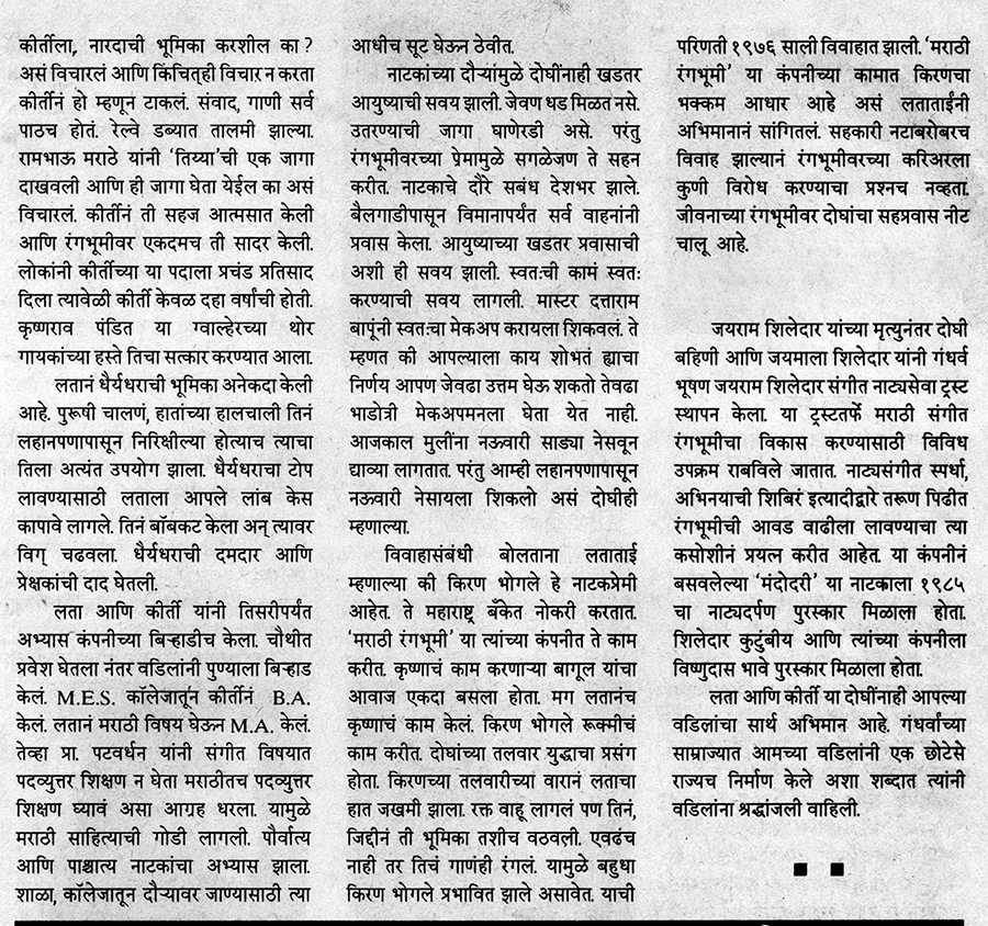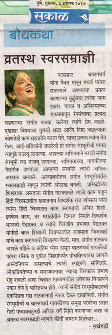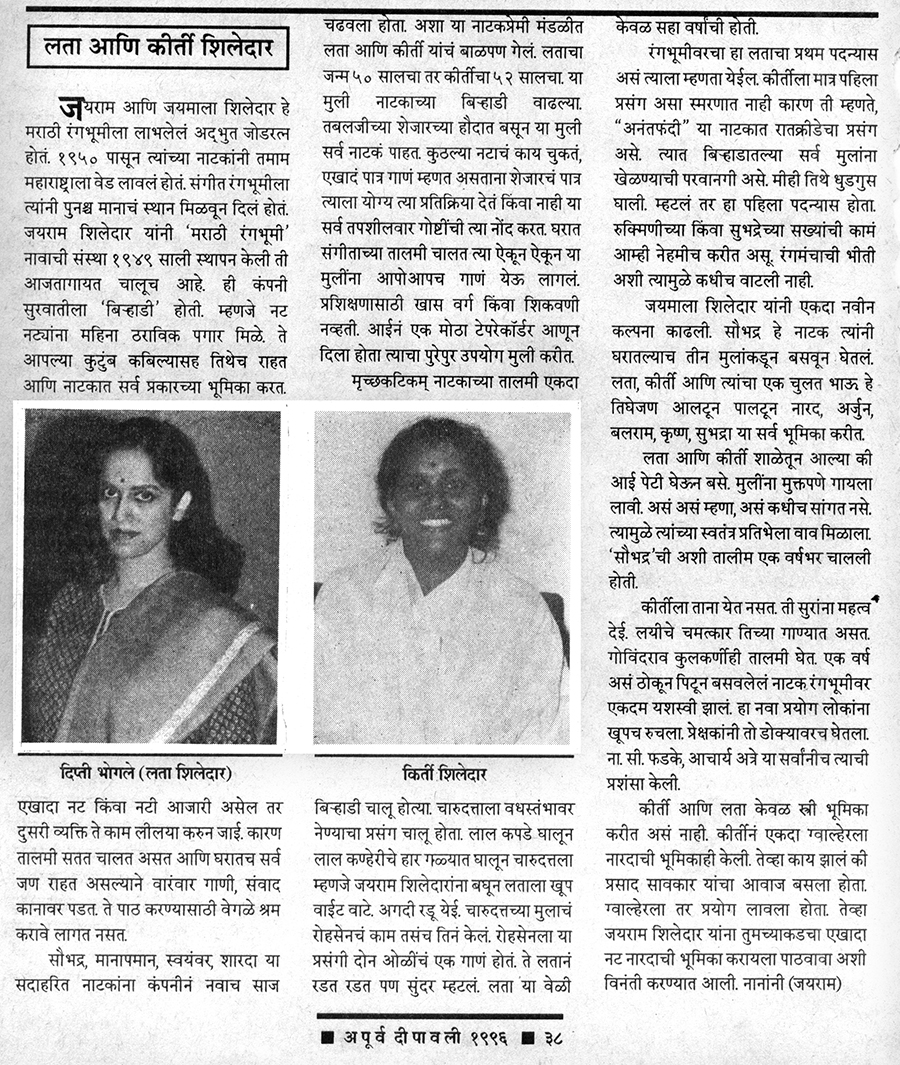 मराठी रंगभूमी विषयी वाचनीय लेख